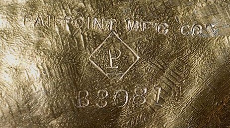 One great thing about Pairpoint lamps is that they are almost always marked. Every original Pairpoint base should have a mark on it. Some lamps are marked and some are not. Fortunately, the quality of the glass and painting on the shade is usually enough that they don’t have to be marked in order to be considered original. However, some Pairpoint lamp shades are marked. We didn’t include it here. But the shade can be marked with a tiny “P” somewhere on the inside of it. We did include some of the more frequently encountered Pairpoint marks below. Please contact us if you need help identifying any marks related to your Pairpoint lamp.